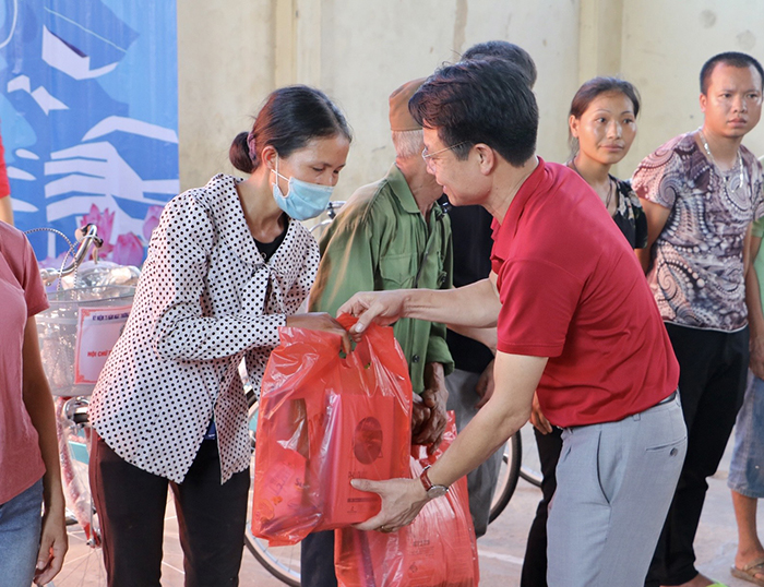 Ông Đào Ngọc Triệu – Chủ tịch Hội Chữ thập đỏ Thành phố Hà Nội trao những túi quà tri ân đến gia đình chính sách, gia đình người có công, người có hoàn cảnh khó khăn
