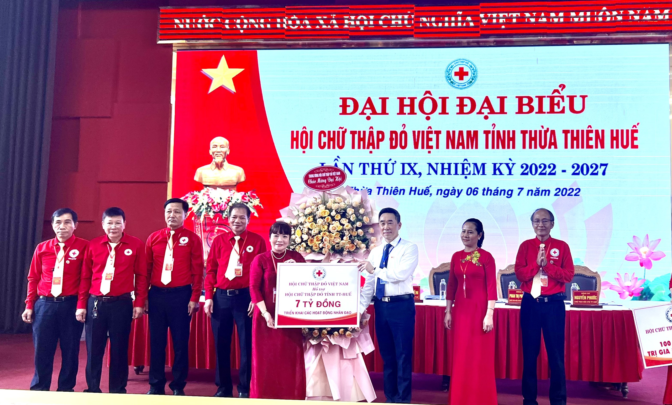 Tại Đại hội, thay mặt Ban Chấp hành Trung ương Hội Chữ thập đỏ Việt Nam Phó Chủ tịch Nguyễn Hải Anh đã trao kinh phí cho Hội Chữ thập đỏ tỉnh Thừa Thiên Huế để triển khai các hoạt động nhân đạo năm 2022 trên địa bàn tỉnh gồm: Tiền để hỗ trợ sửa chữa và xây mới nhà do Tập đoàn Thaco tài trợ thông qua Trung ương Hội; tiền hỗ trợ của Trung ương Hội và nguồn hỗ trợ áo phao cứu sinh đa năng, cờ Tổ quốc, túi sơ cấp cứu, hỗ trợ sinh kế và quà tặng Đại hội. Tổng trị giá hơn 7 tỷ đồng.