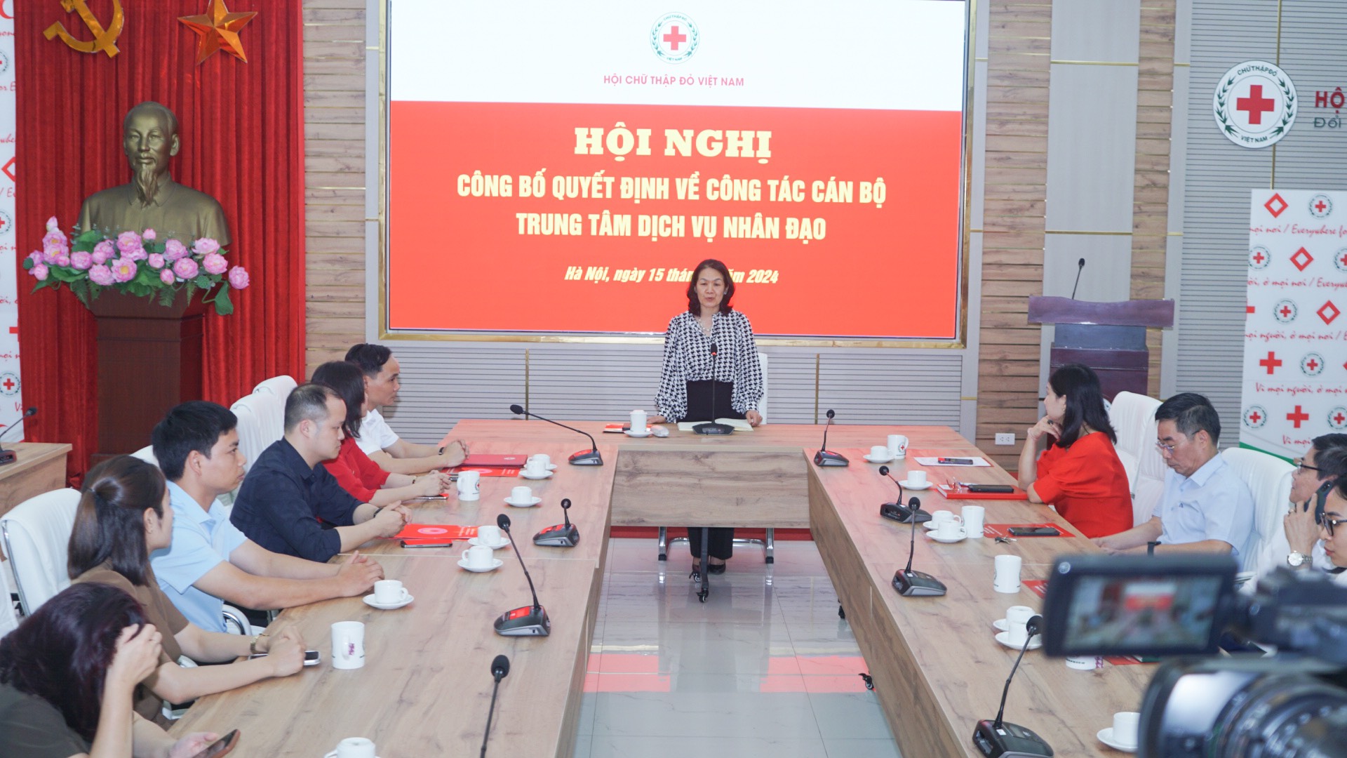 Dự và chỉ đạo Hội nghị có Bà Bùi Thị Hòa, Bí thư Đảng đoàn, Chủ tịch Trung ương Hội Chữ thập đỏ Việt Nam, cùng Trưởng, phó các Ban, đơn vị cơ quan Trung ương Hội Chữ thập đỏ Việt Nam. Trao quyết định và phát biểu tại Hội nghị, Bà Bùi Thị Hòa chúc mừng ông Nguyễn Văn Cường đã trúng tuyển vị trí Giám đốc Trung tâm Dịch vụ Nhân đạo. Việc tuyển dụng và bổ nhiệm ông Nguyễn Văn Cường đã đảm bảo đúng các quy trình, quy định về công tác cán bộ. Trung tâm Dịch vụ Nhân đạo là một đơn vị sự nghiệp có thu hoạt động theo cơ chế tự chủ về tài chính theo đúng quy chế, quy định từ khi thành lập Trung tâm.