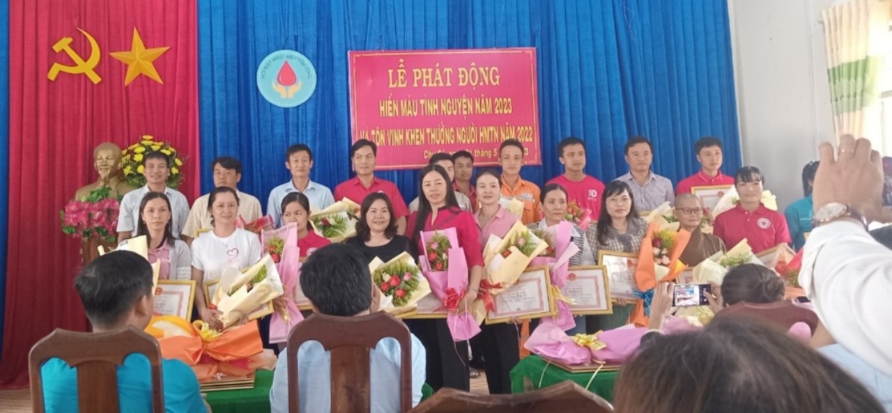 UBND huyện Chư Sê tặng giấy khen cho các tập thể, cá nhân có thành tích xuất sắc trong phong trào hiến máu tình nguyện năm 2022.