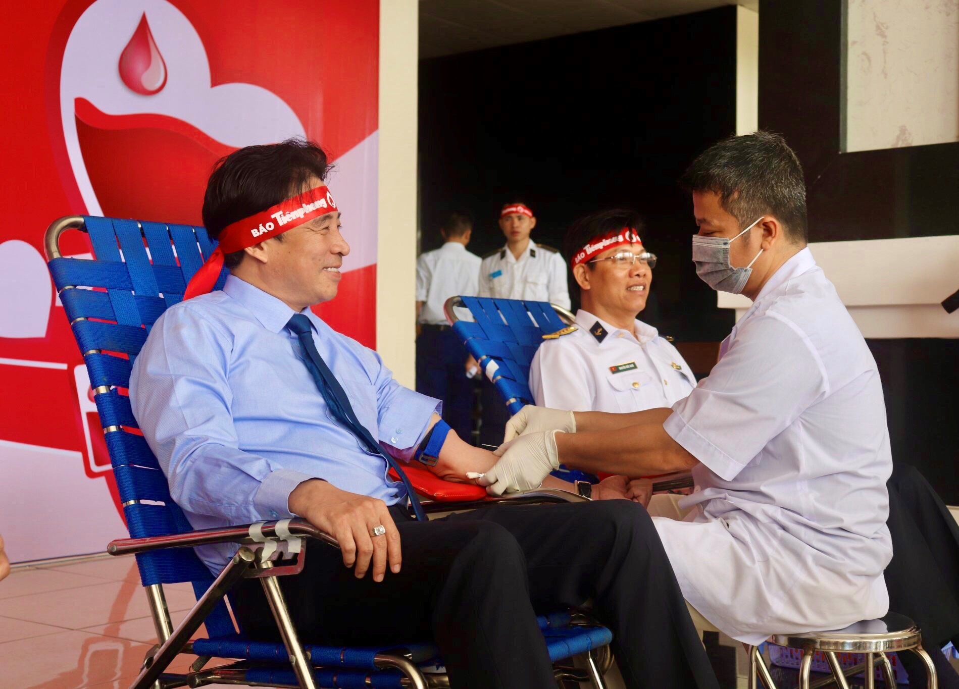 Ông Nguyễn Khắc Toàn, Phó Bí thư thường trực Tỉnh ủy Khánh Hòa tham gia hiến máu tình nguyện