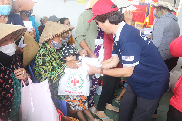 Dịp này, Hội Chữ thập đỏ tỉnh Khánh Hòa trao tặng 100 suất quà cho người dân phường Ninh Hà đang sinh sống tại vùng có nguy cơ cao ảnh hưởng bởi bão, lũ lụt.