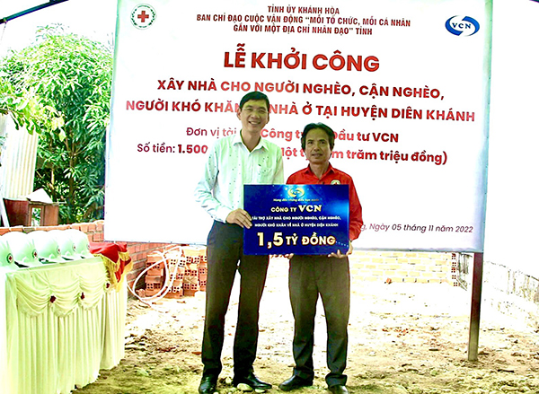 Ngoài 25 căn nhà được Công ty CP Đầu tư VCN tài trợ, đợt này Ban Chỉ đạo đã vận động các nhà tài trợ khác hỗ trợ xây 8 căn nhà cho hộ nghèo, cận nghèo, hộ có hoàn cảnh khó khăn tại huyện Khánh Vĩnh với tổng số tiền 480 triệu đồng. Dự kiến bàn giao nhà đưa vào sử dụng cho người dân trước Tết Nguyên Đán 2023.