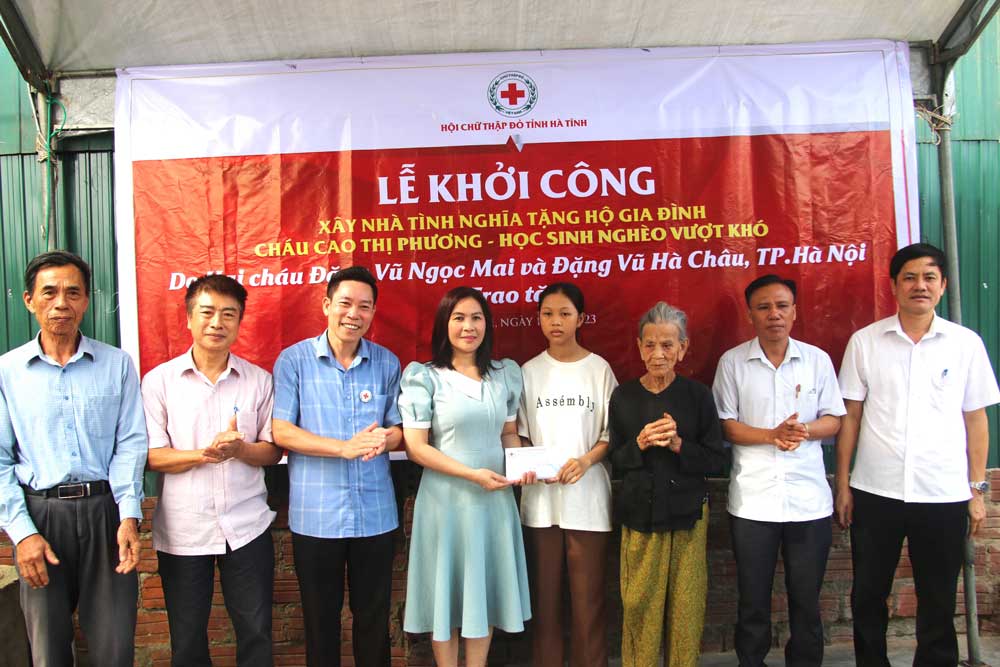 Ngày 19/6, Hội Chữ thập đỏ tỉnh Hà Tĩnh phối hợp với Hội Chữ thập đỏ huyện Lộc Hà và UBND xã Hộ Độ tổ chức Lễ khởi công xây Nhà tình nghĩa cho em Cao Thị Phương trú tại thôn Vĩnh Phong – xã Hộ Độ – huyện Lộc Hà. Gia đình em Phương được Hội Chữ thập đỏ tỉnh trao số tiền hỗ trợ làm nhà đợt 1 là 55 triệu đồng từ nguồn hỗ trợ do 2 cháu Đặng Vũ Ngọc Mai và Đặng Vũ Hà Châu thành phố Hà Nội trao tặng.