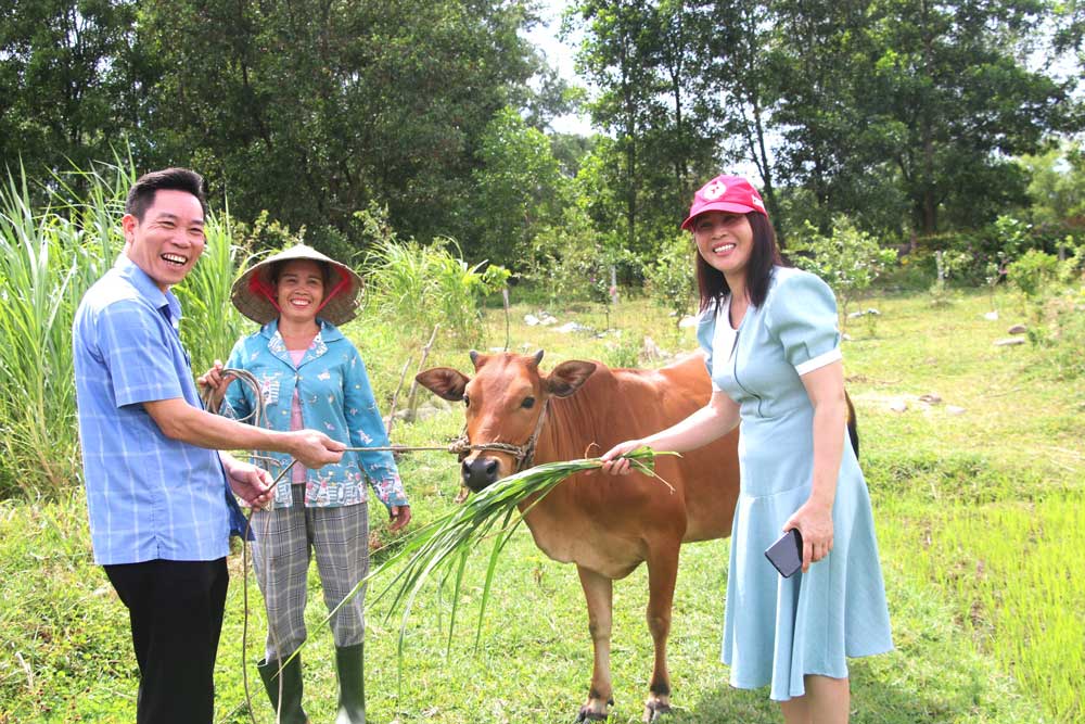 Cũng trong buổi sáng, nhà tài trợ trao tiền hỗ trợ mua bò sinh kế cho hộ gia đình chị Nguyễn Thị Thủy có hoàn cảnh khó khăn tại xã Cẩm Sơn, huyện Cẩm xuyên. Gia đình được hỗ trợ 15 triệu đồng để mua bò sinh sản từ cũng từ nguồn của 2 em Ngọc Mai và Hà Châu Tp Hà Nội.
