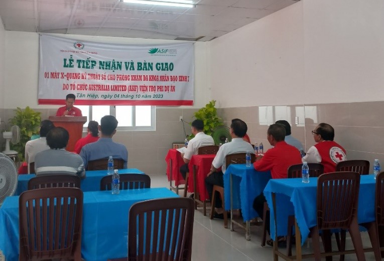 Ngày 4/10, Hội Chữ thập đỏ tỉnh Kiên Giang phối hợp đại diện Tổ chức ASIF Australia Limited (ASIF), UBND xã Thạnh Đông A, huyện Tân Hiệp tổ chức lễ tiếp nhận và bàn giao máy X-Quang kỹ thuật số cho Phòng khám Đa khoa Nhân đạo Kinh 7 (Hội Chữ thập đỏ Kinh 7) trực thuộc Hội Chữ thập đỏ tỉnh Kiên Giang.