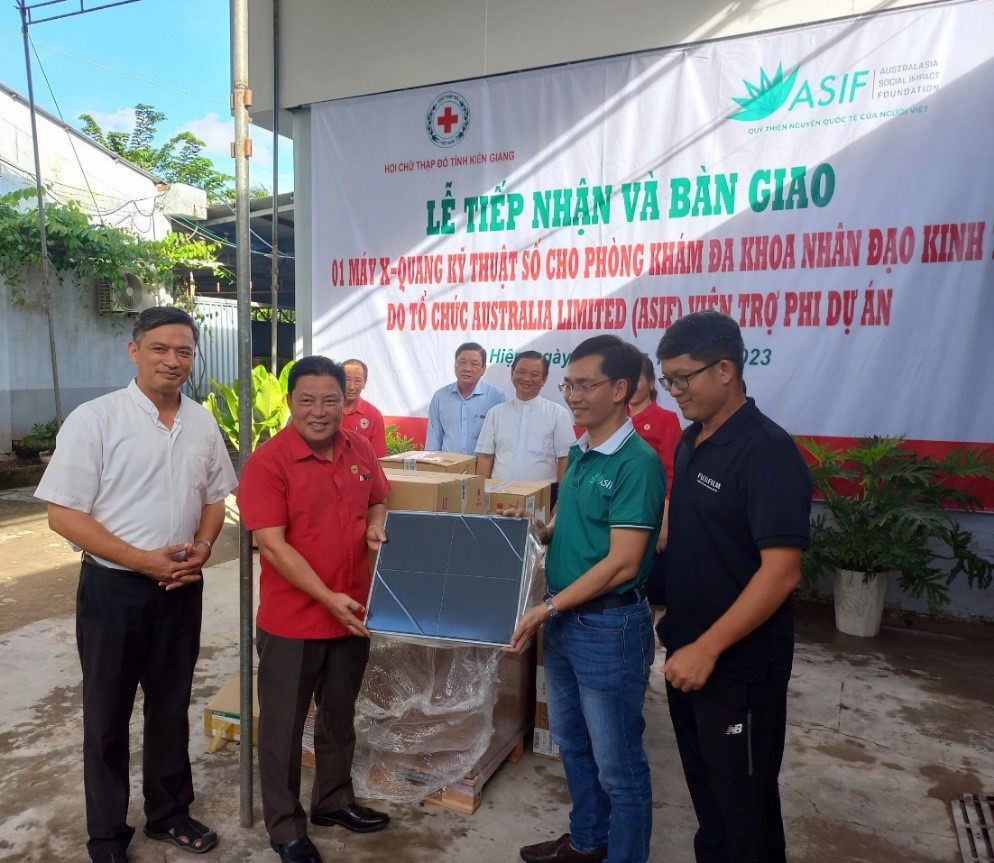 Máy X-Quang kỹ thuật số do Tổ chức ASIF Australia Limited (ASIF) viện trợ phi dự án cho Phòng khám Đa khoa Nhân đạo Kinh 7 (Hội Chữ thập đỏ Kinh 7) được UBND tỉnh Kiên Giang phê duyệt khoản viện trợ tại Quyết định số 1665/QĐ-UBND ngày 03/7/2023, theo đó Hội Chữ thập đỏ tỉnh Kiên Giang là chủ khoản viện trợ, với tổng trị giá trị viên trợ 85.874 USD, tương đương 2 tỷ đồng; trong đó vốn viện trợ không hoàn lại 62.375 USD tương đương 1 tỷ 452,7 triệu đồng, vốn đối ứng 23.499 USD tương đương 547,3 triệu đồng (do Phòng khám Nhân đạo Kinh 7 đối ứng).