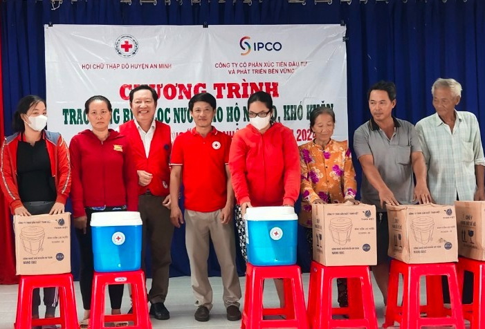 Tại buổi Lễ, ông Nguyễn Trọng Nghĩa, Phó Trưởng cơ quan Đại diện Phía Nam, Trung ương Hội Chữ thập đỏ Việt Nam đã trao bảng tượng trưng cho Hội Chữ thập đỏ tỉnh Kiên Giang: tặng 200 bộ áo phao cứu sinh đa năng ngư dân nghèo, khó khăn tại 12 xã đặc biệt khó khăn, bãi ngang ven biển gồm các huyện An Biên, An Minh và Hòn Đất, tổng trị giá 300 triệu đồng. Đồng thời đã trao tặng 104 áo phao cứu sinh đa năng và 100 bình lọc nước cho ngư dân nghèo, khó khăn trên địa bàn 6 xã ven biển: Vân Khánh Đông, Vân Khánh Tây, Vân Khánh, Tân Thạnh, Đông Hưng A, Thuận Hòa, huyện An Minh, tổng trị giá 246 triệu đồng. Nguồn hỗ trợ do Trung ương Hội Chữ thập đỏ Việt Nam vận động Ngân hàng Thương mại Cổ phần Quân đội; Công ty Cổ phần Xúc tiến Đầu tư và Phát triển Bền Vững (SIPCO) tài trợ.
