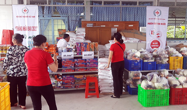 Hưởng ứng “Tháng Nhân đạo” và Chiến dịch “Những giọt máu hồng” hè năm 2021, Hội CTĐ tỉnh đã phối hợp với Hội Chữ thập đỏ Vòng tay nhân ái tỉnh tổ chức phiên Chợ Nhân đạo lưu động, hỗ trợ 200 phiếu đổi quà tại phiên chợ (500.000 đồng/suất gồm: gạo, rau, cũ , quả và nhu yếu phẩm) cho 200 hộ nghèo, cận nghèo và hộ có hoàn cảnh khó khăn trên địa bàn xã Vĩnh Thắng. Đồng thời, khám bệnh, tư vấn sức khỏe cấp thuốc và hớt tóc miễn phí, hỗ trợ 2.000 khẩu trang y tế cho người dân tham gia phiên chợ, trị giá gần 100 triệu đồng.