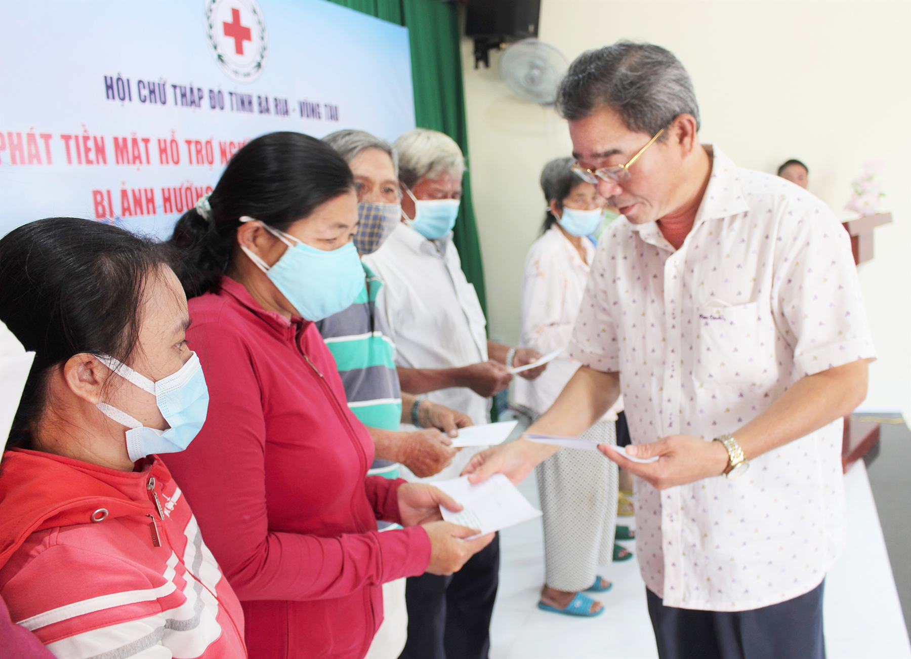 Ông Lê Văn Hậu, Chủ tịch Hội Chữ thập đỏ tỉnh tặng quà cho người nghèo huyện Đất Đỏ.