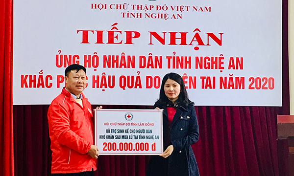 Trước đó, Hội Chữ thập đỏ tỉnh Lâm Đồng đã trực tiếp tổ chức thăm hỏi và cứu trợ cho nhân dân các tỉnh Quảng Trị, Quảng Bình, Thừa Thiên Huế.