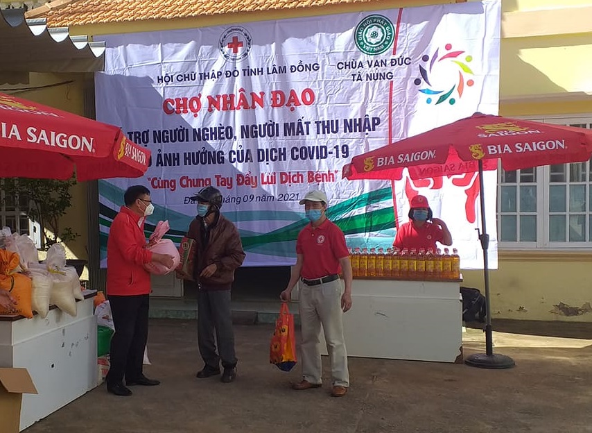 Ông Đỗ Hoàng Tuấn – Chủ tịch Hội Chữ thập đỏ tỉnh Lâm Đồng cho biết: Thực hiện chỉ đạo của Trung ương Hội Chữ thập đỏ Việt Nam; của Tỉnh ủy, UBND tỉnh, Trung tâm chỉ huy phòng chống Covid-19 tỉnh về chăm lo cho người nghèo, người bị ảnh hưởng do dịch Covid-19. Thời gian qua Hội Chữ thập đỏ tỉnh đã vận động nguồn lực, tổ chức nhiều hoạt động như: Chợ Nhân đạo; Điểm phát lương thực, thực phẩm; Suất ăn miễn phí đã giúp được nhiều hoàn cảnh vượt qua khó khăn trong thời điểm dịch bệnh Covid-19.