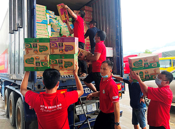 Xe hàng cứu trợ sẽ được chuyển đến Hội Chữ thập đỏ TP. Hồ Chí Minh. Đồng Nai để cấp