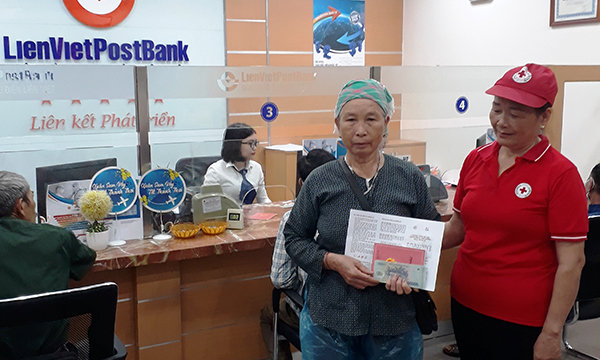 Người dân được nhận tiền hỗ trợ thông qua Ngân hàng Bưu điện Liên Việt chi nhánh huyện Bảo Thắng, Lào Cai