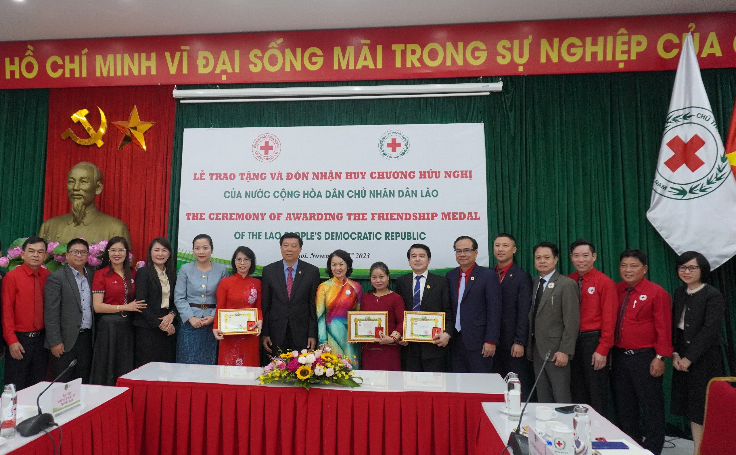 Tại buổi lễ, được uỷ quyền của Thủ tướng Chính phủ nước Cộng hòa dân chủ nhân dân Lào, Ông Phouthone MuongPak Chủ tịch Hội Chữ thập đỏ Lào đã trao tặng Huy chương Hữu nghị cho 03 tập thể: Ban Đối ngoại và Phát triển Trung ương Hội Chữ thập đỏ Việt Nam, Hội Chữ thập đỏ tỉnh Thanh Hoá và Hội Chữ thập đỏ tỉnh Kon Tum. Trước đó, vào tháng 5/2023, Hội Chữ thập đỏ Việt Nam đã vinh dự đón nhận Huân chương Hữu nghị của nước Cộng hòa dân chủ nhân dân Lào nhân kỷ niệm 60 năm thiết lập quan hệ ngoại giao giữa nước Cộng hòa xã hội chủ nghĩa Việt Nam và nước Cộng hòa dân chủ nhân dân Lào (05/9/1962 – 05/9/2022) và 45 năm ký Hiệp ước hữu nghị và hợp tác Việt Nam – Lào (18/7/1977 – 18/7/2022).