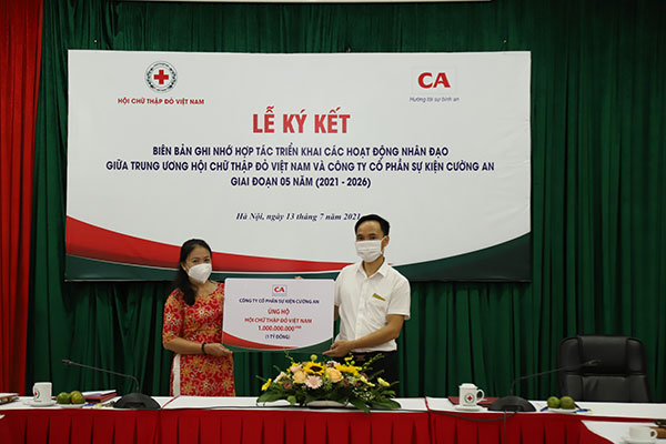 Tại Lễ ký kết, Công ty Cổ phần sự kiện Cường An đã trao biểu trưng 1 tỷ đồng ủng hộ cho Trung tâm Hiến máu nhân đạo TP.Hồ Chí Minh để hỗ trợ các hoạt động phòng, chống dịch bệnh Covid-19.