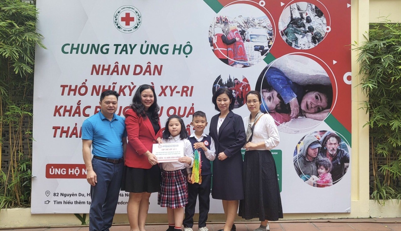 Hội Chữ thập đỏ Việt Nam tiếp nhận 12 triệu đồng hỗ trợ nhân dân Thổ Nhĩ Kỳ và Sy-Ri của tập thể lớp J2-1, Trường Quốc tế Nhật Bản.