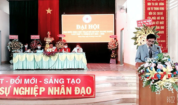 Phát biểu chỉ đạo tại Đại hội, ông Cao Xuân Nam – Phó Chủ tịch Hội Chữ thập đỏ tỉnh Gia Lai ghi nhận những thành tích mà Hội Chữ thập đỏ huyện Mang Yang đã đạt được trong nhiệm kỳ qua, đồng thời nêu ra một số vấn đề cần tập trung triển khai thực hiện trong nhiệm kỳ mới, đó là: Tiếp tục quan tâm phát triển số lượng và nâng cao chất lượng hội viên, tình nguyện viên Chữ thập đỏ; tổ chức thực hiện có hiệu quả 7 lĩnh vực hoạt động đã được quy định trong Luật hoạt động Chữ thập đỏ. Trong đó cần tập trung đẩy mạnh 4 lĩnh vực ưu tiên (Cứu trợ khẩn cấp và trợ giúp nhân đạo, Chăm sóc sức khỏe cộng đồng, Hiến máu nhân đạo, Tham gia phòng ngừa, ứng phó thảm họa); triển khai có hiệu quả các phong trào, cuộc vận động lớn do Trung ương Hội Chữ thập đỏ Việt Nam phát động như: Phong trào “Tết vì người nghèo và nạn nhân chất độc da cam”; Dự án “Ngân hàng bò”, đặc biệt là đẩy mạnh hơn nữa Cuộc vận động “Mỗi tổ chức, mỗi cá nhân gắn với một địa chỉ nhân đạo” trở thành cuộc vận động mang tính chiến lược, sâu rộng trên địa bàn.