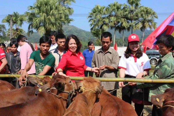 Hội Chữ thập đỏ Việt Nam tặng bò giống trợ giúp người nghèo tỉnh Hà Giang