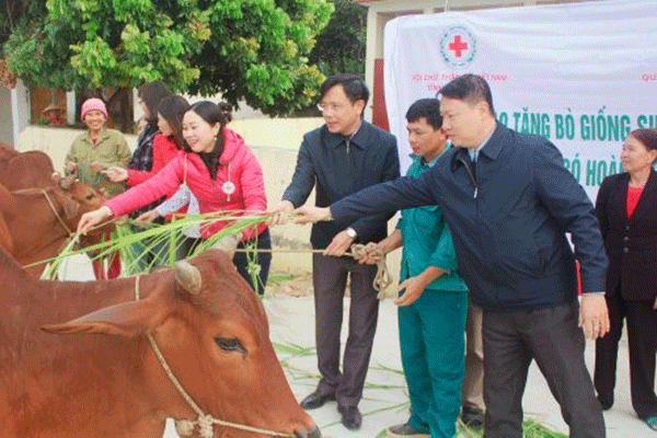Các cấp Hội Chữ thập đỏ bàn giao bò giống cho hộ nghèo, nạn nhân chất độc da cam