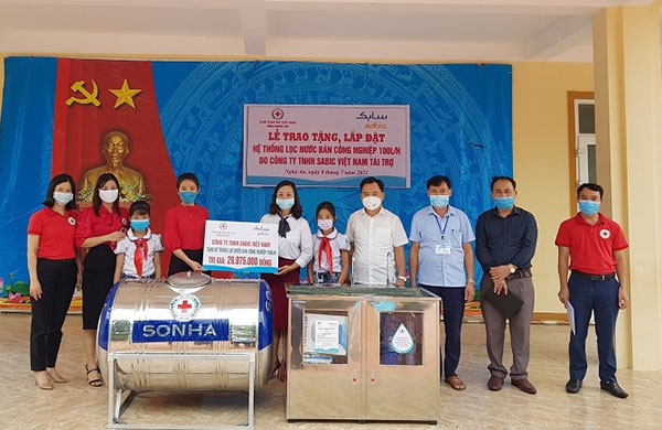 Trong 2 ngày 7 – 8/7/2021, Hội đã trao tặng và lắp đặt 6 máy lọc nước bán công nghiệp tại Trường Tiểu học Nghi Kiều 1, Tiểu học Nghi Hoa (huyện Nghi Lộc); Trường Tiểu học Hồ Tông Thốc, Trường THCS Khánh Thành (huyện Yên Thành); Trường Tiểu học Thanh Phong, Trường THCS Đại Đồng (huyện Thanh Chương).