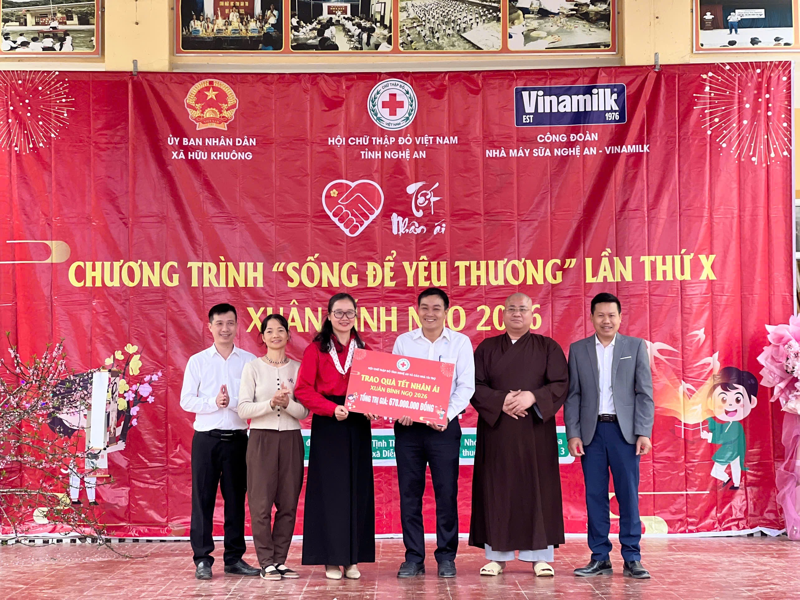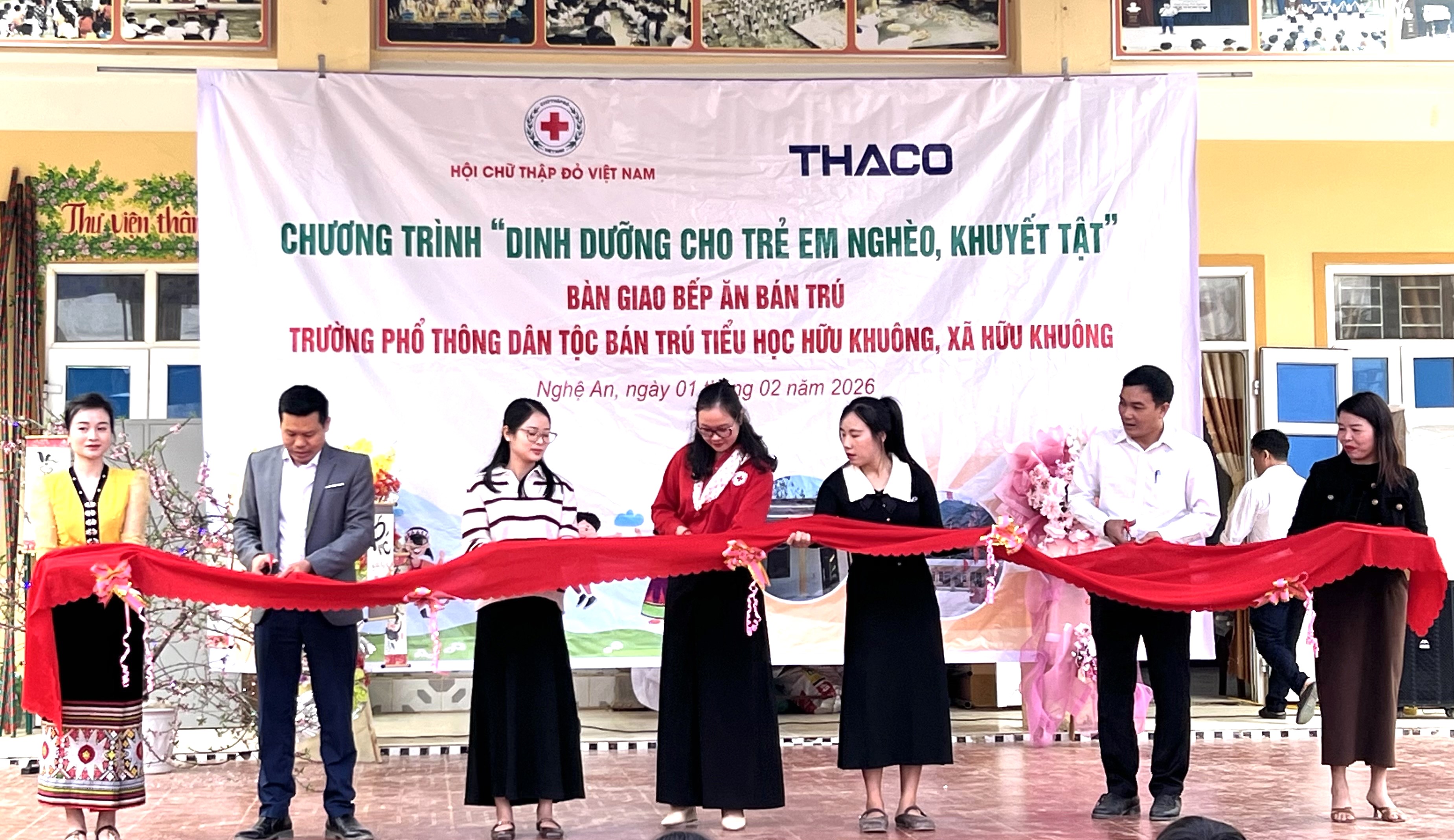 Điểm nhấn của chương trình là lễ khánh thành và bàn giao công trình bếp ăn bán trú Trường Phổ thông Dân tộc Bán trú Tiểu học Hữu Khuông do Công ty Cổ phần Tập đoàn Trường Hải tài trợ 300 triệu đồng thông qua Trung ương Hội Chữ thập đỏ Việt Nam và Hội Chữ thập đỏ tỉnh Nghệ An. Công trình được đưa vào sử dụng trong những ngày đầu năm 2026, mang lại niềm vui lớn cho thầy cô giáo, phụ huynh và 185 em học sinh của nhà trường.