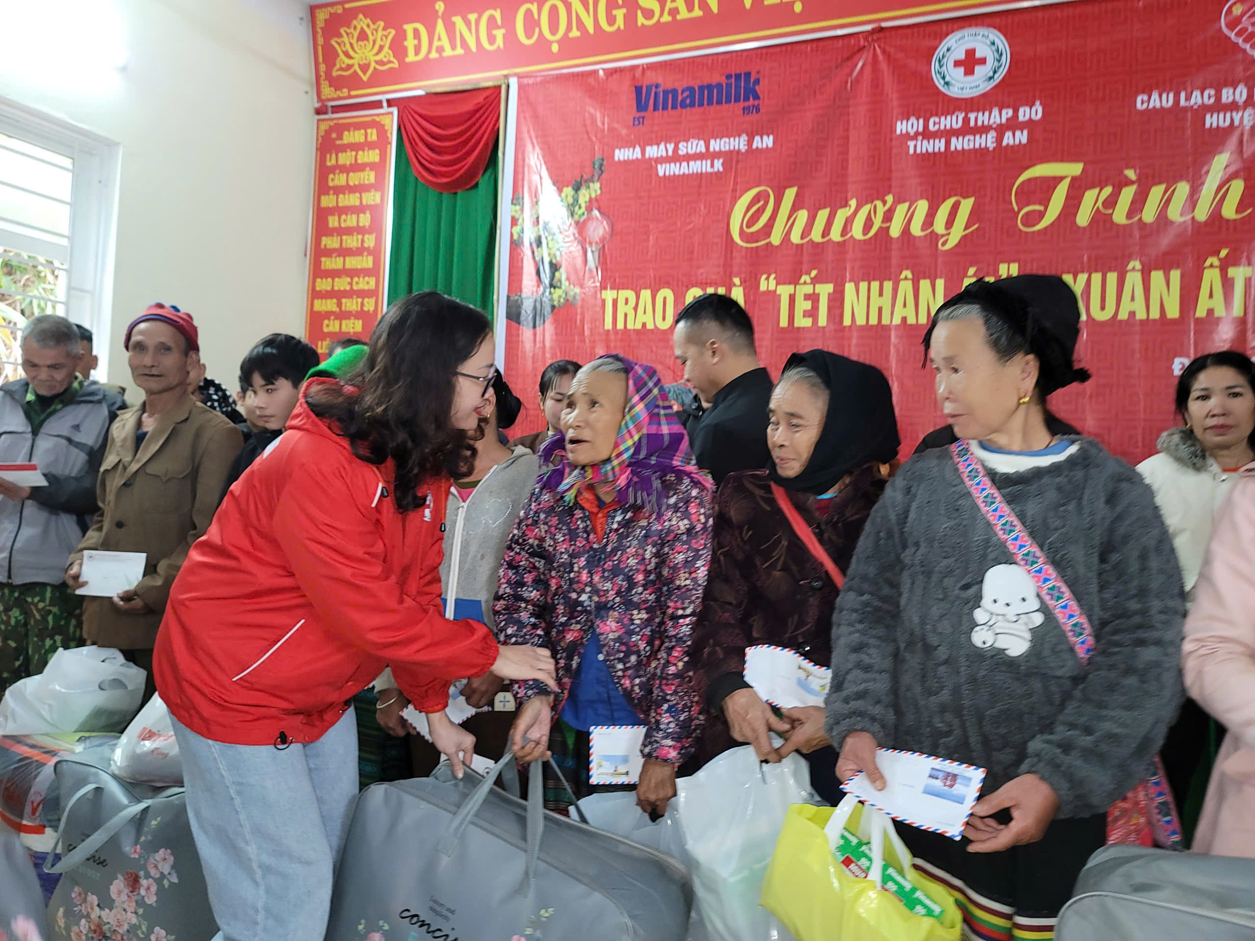 Chiều cùng ngày, Hội Chữ thập đỏ tỉnh phối hợp với Công đoàn Nhà máy sữa Vinamilk Nghệ An, Câu lạc bộ Hiến máu nhân đạo huyện Quỳnh Lưu, Hộ kinh doanh xưởng sản xuất Kyodo Foods, và Câu lạc bộ Ngân hàng máu hiếm Rh- đã tặng quà Tết nhân ái cho 132 hộ dân tại bản Chà Lúm. Mỗi hộ dân nhận tiền mặt trị giá 300.000 đồng và quà gồm sữa, chăn ấm, miến, tổng trị giá là 93 triệu đồng.