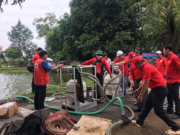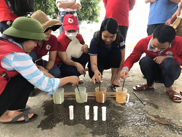 Khóa học cũng dành 1 ngày cho học viên ra hiện trường thực hành truyền thông nước sạch vệ sinh tại cộng đồng; Pha hóa chất đúng quy trình, liệu lượng và vận hành Máy lọc nước Scan với công suất 4.000l nước sạch/1 giờ.