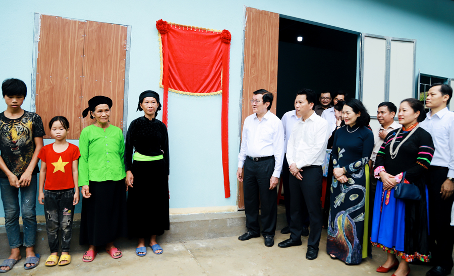 Thấu hiểu nỗi khó khăn, vất vả của bà con dân tộc các tỉnh biên giới phía Bắc, Nguyên Chủ tịch nước Trương Tấn Sang đã vận động các doanh nghiệp chung tay hỗ trợ các cựu binh nghèo và bà con dân tộc nghèo các xã biên giới 6.000 căn nhà theo tiêu chí “3 cứng” (cứng mái, cứng nền, cứng tường). Ngày 9/7/2022, ông đã cùng các lãnh đạo tỉnh Hà Giang đến thăm, bàn giao căn nhà mới cho gia đình bà Khấu Thị Đẹp (dân tộc Tày) tại bản Khén, xã Lạc Nông, huyện Bắc Mê. Đây là căn nhà thứ 5.800 được bàn giao cho các đối tượng hưởng thụ trong kế hoạch tặng 6.000 căn nhà do các doanh nghiệp triển khai từ năm 2019.