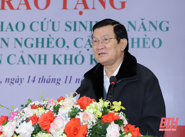 Nguyên Chủ tịch nước Trương Tấn Sang phát biểu tại buổi lễ trao áo phao