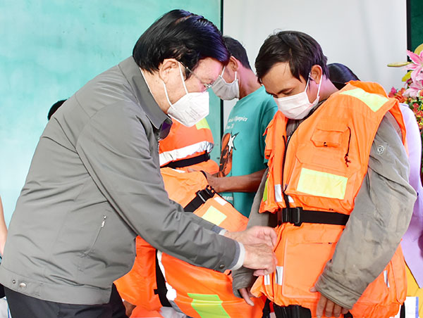 Nguyên Chủ tịch nước Trương Tấn Sang, cùng lãnh đạo Trung ương Hội Chữ thập đỏ Việt Nam đã trao tặng 1.000 bộ áo phao cứu sinh đa năng trị giá hơn 1,2 tỷ đồng cho ngư dân nghèo có hoàn cảnh khó khăn trên địa bàn tỉnh.