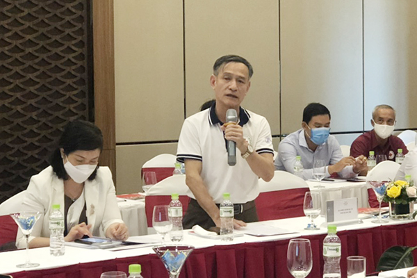 Ông Nguyễn Đình Chiến – Chủ tịch Hội Chữ thập đỏ tỉnh Quảng Trị phát biểu tại Hội nghị