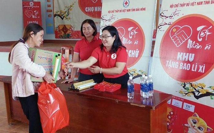 Hội Chữ thập đỏ tỉnh Ðắk Nông phối hợp các nhà tài trợ tổ chức Chợ Nhân đạo hỗ trợ các hộ gia đình có hoàn cảnh khó khăn tại xã Ðắk Som, huyện Ðắk Glong nhân dịp Xuân Quý Mão 2023. (Ảnh MINH NHÂN)