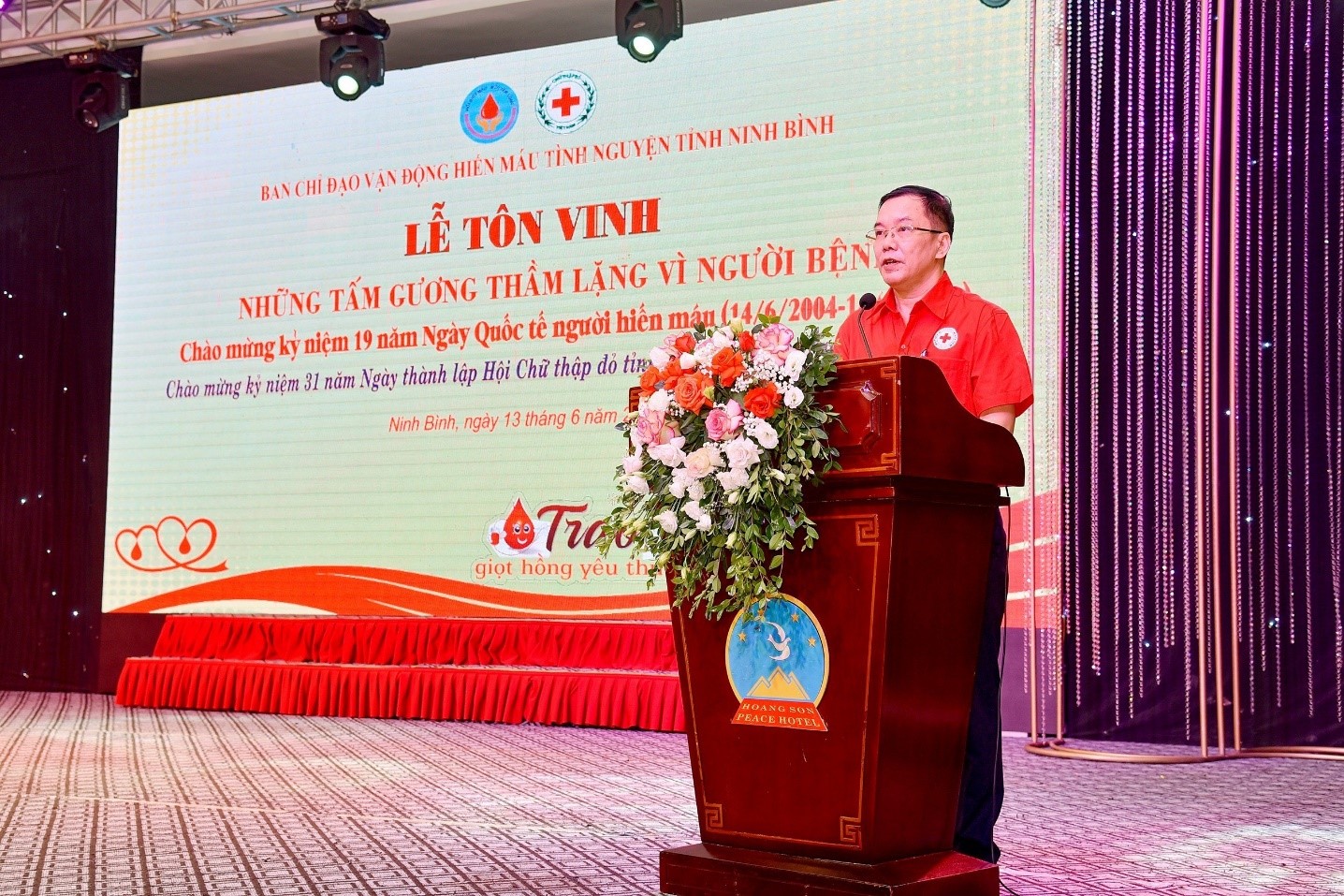 Ông Bùi Trọng Kỳ, Chủ tịch Hội Chữ thập đỏ tỉnh, Phó Trưởng Ban thường trực Ban Chỉ đạo vận động HMTN tỉnh Ninh Bình khẳng định: “Máu là món quà vô giá giữ nhịp đập trái tim cho người bệnh”, góp phần cùng ngành y tế kịp thời cấp cứu và điều trị cho hàng nghìn người bệnh cần truyền máu. HMTN không chỉ để cứu sống người bệnh hôm nay mà chúng ta còn gieo thêm những hạt giống của lòng nhân ái, sự sẻ chia trong cuộc sống. Hình ảnh hàng trăm gia đình, cá nhân tiêu biểu trong phong trào HMTN trên địa bàn tỉnh Ninh Bình chính là hạt nhân, là linh hồn của phong trào HMTN, là minh chứng sống động cho tinh thần dân tộc, cho truyền thống tương thân, tương ái, sẻ chia của người dân Việt Nam mỗi khi đồng chí, đồng bào gặp phải tình huống khó khăn, thiên tai, dịch bệnh. Mong rằng các tấm gương tiêu biểu, xuất sắc trong cả tỉnh sẽ là những hạt nhân nòng cốt cho phong trào hiến máu tình nguyện để chúng ta có thêm hàng ngàn, hàng vạn tấm gương sáng về hiến máu và vận động hiến máu tình nguyện, để những đơn vị Máu luôn sẵn sàng chờ người bệnh – không để tình trạng người bệnh phải chờ Máu./.