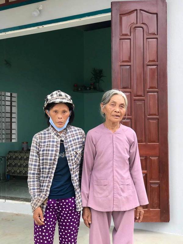 Hai mẹ con bà Nguyễn Thị Mỹ Vân (thôn Bình Lâm, xã Phước Hòa) trước ngôi nhà mới xây