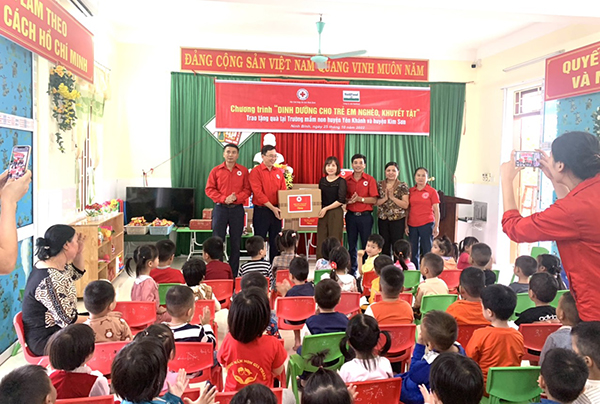 Hội Chữ thập đỏ tỉnh Ninh Bình đại diện cho các nhà hảo tâm là Công ty Cổ phần thực phẩm Dinh dưỡng Nutifood; Nhóm thiện nguyện Mùa thu tại Hà Nội… trao tặng sữa, bánh kẹo cho hơn 1.100 trẻ em của các Trường Mầm non Kim Mỹ, Kim Định (huyện Kim Sơn) và Trường Mầm non Khánh Hội (huyện Yên Khánh).