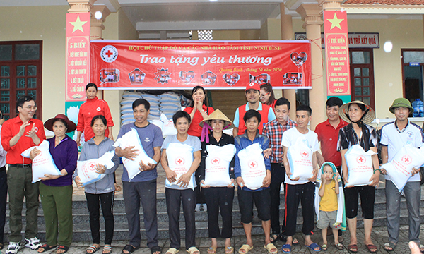 Trước đó, Hội Chữ thập đỏ tỉnh Ninh Bình đã kết nối và điều phối hàng hóa, nhu yếu phẩm trị giá trên 02 tỷ đồng, kịp thời chia sẻ khó khăn với người dân vùng lũ Miền Trung. Tiêu biểu như Công ty Bất động sản Đức Giáp; bà Phạm Tư ở xã Khánh Thiện, huyện Yên Khánh; CLB cháo Thiện tâm Yên Mô; CLB Tâm Đức; CLB xe Bán tải Ninh Bình; CLB Ước Mơ Xanh; Hội Chữ thập đỏ huyện Yên Khánh; Bà Đàm Ngọc Yến, DNTN Vàng Bạc Quang Hưng, thị trấn Nho Quan…