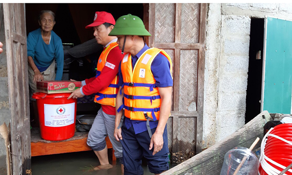 Để kịp thời hỗ trợ bà con vùng lũ trong giai đoạn khẩn cấp, Trung ương Hội Chữ thập đỏ Việt Nam cũng đã triển khai cứu trợ thùng hàng gia đình, viên khử khuẩn làm sạch nước. Công ty TNHH nước giải khát Coca Cola Việt Nam đã hỗ trợ 30.000 chai nước uống cho Quảng Bình và Quảng Trị thông qua Trung ương Hội Chữ thập đỏ Việt Nam. Tổng giá trị hàng cứu trợ của Trung ương Hội cho các địa phương là hơn 700 triệu đồng.