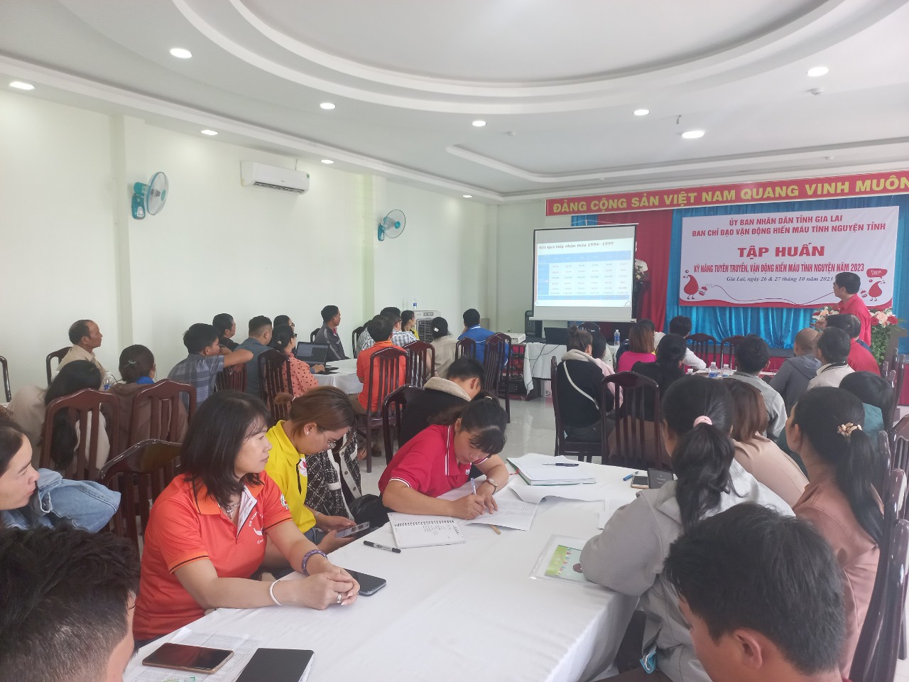 Sáng 26/10, tại thành phố Pleiku, Ban Chỉ đạo vận động hiến máu tình nguyện (HMTN) tỉnh Gia Lai phối hợp với Hội Chữ thập đỏ tỉnh Gia Lai, tổ chức khai mạc lớp tập huấn Kỹ năng tuyên truyền, vận động HMTN cho 50 tuyên truyền viên, tình nguyện viên, cán bộ Hội Chữ thập đỏ cơ sở của 17 huyện, thị xã, thành phố, các cơ quan, đơn vị, trường học và các câu lạc bộ HMTN trên địa bàn tỉnh.
