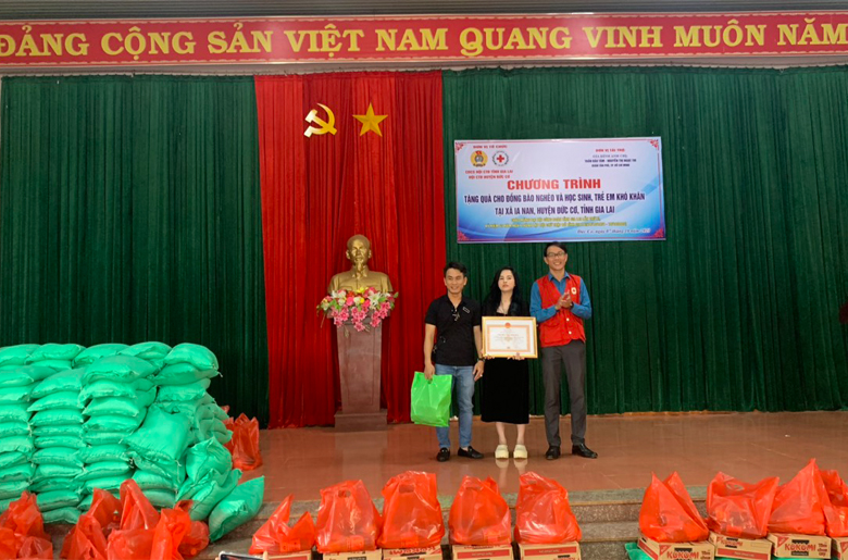 Ngày 7/10, Công đoàn cơ sở Hội Chữ thập đỏ tỉnh Gia Lai, Hội Chữ thập đỏ huyện Đức Cơ phối hợp với gia đình anh chị Trần Bảo Tâm – Nguyễn Thị Ngọc Thi (địa chỉ 142A đường Lê Lâm, phường Phú Thạnh, quận Tân Phú, TP. Hồ Chí Minh) và UBND xã Ia…