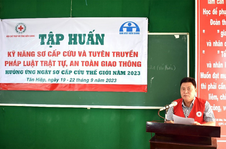 Ngày 19/9, tại huyện Tân Hiệp, Hội Chữ thập đỏ tỉnh Kiên Giang phối hợp Ban An toàn giao thông tỉnh tổ chức khai giảng lớp tập huấn kỹ năng sơ cấp cứu và tuyên truyền pháp luật trật tự, an toàn giao thông năm 2023, cho gần 50 cán bộ, hội viên, tình nguyện…