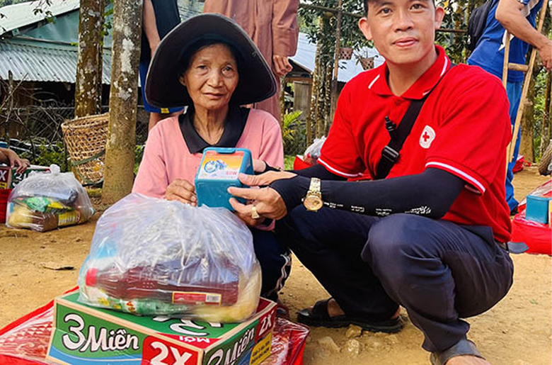 Đó là bà Cao Thị Liên – hiện là tình nguyện viên của Hội Chữ thập đỏ xã Phước Hưng (huyện Tuy Phước, tỉnh Bình Định), luôn hết lòng với công tác từ thiện, khuyến học của địa phương. Ở tuổi 68, bà vẫn dành dụm lương hưu để đỡ đầu cho 8 đứa trẻ…
