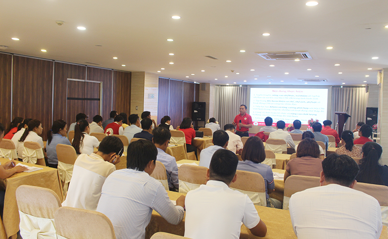 Quang cảnh lớp tập huấn Tại lớp tập huấn, các học viên đã được tập huấn viên chuyên môn của tỉnh Hội truyền đạt những kiến thức cơ bản về 04 chuyên đề gồm: Văn bản của Đảng, Nhà nước về công tác Hội, Luật hoạt động Chữ thập đỏ, Điều lệ Hội Chữ…