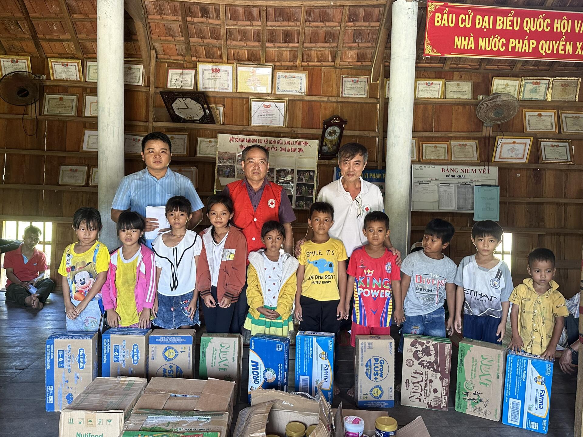 Trao sữa cho người già và trẻ em tại xã Vĩnh Thịnh, huyện Vĩnh Thạnh (Bình Định)