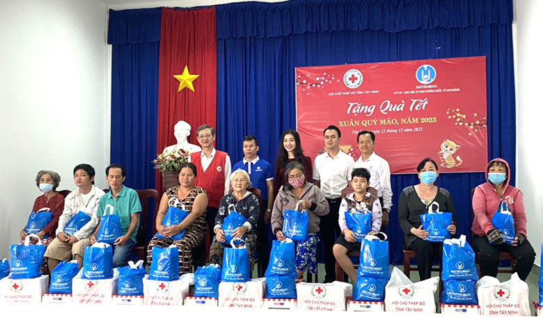 Đại diện Hội Chữ thập đỏ tỉnh và nhà tài trợ tặng quà Tết cho người nghèo ở thành phố Tây Ninh Tại chương trình, Ban tổ chức đã trao tặng 52 suất quà và các phần sữa non Natrumax Sure Gold cho các hộ nghèo. Mỗi suất quà gồm: Gạo, mỳ, nước tương,…