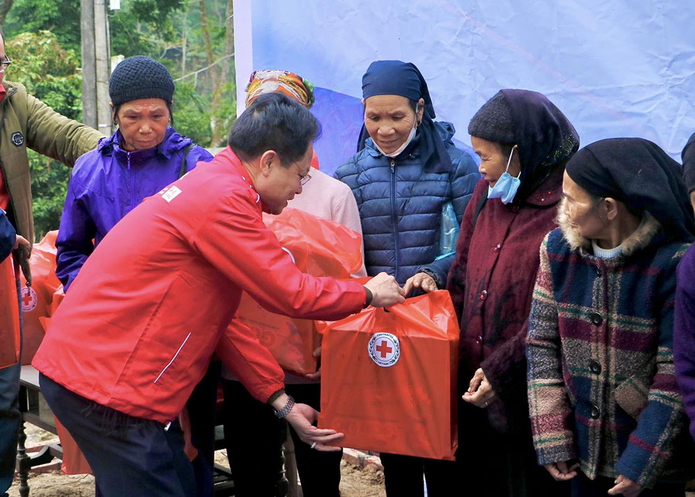 Lãnh đạo Hội Chữ thập đỏ và nhà hảo tâm trao quà Tết cho người dân. Tại Lễ phát động, Hội Chữ thập đỏ các xã thị trấn và các nhà hảo tâm đã xung phong đăng ký ủng hộ trao tặng 1.300 suất quà, đồng thời Hội cũng trao tặng 01 căn nhà…
