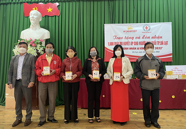 Lãnh đạo Hội Chữ thập đỏ thành phố Đà Lạt trao tặng máy đo huyết áp cho người cao tuổi trên địa bàn thành phố do Tập đoàn Kingspost tài trợ. Tham dự chương trình có bà Nguyễn Thị Hà, Phó Chủ tịch Hội Chữ thập đỏ tỉnh Lâm Đồng; Ông Nguyễn Quang Huy,…