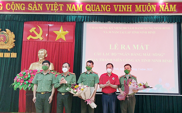 Các đồng chí Lãnh đạo Công an tỉnh và Lãnh đạo Hội Chữ thập đỏ tỉnh tặng hoa chúc cùng Ban Chủ nhiệm Câu lạc bộ “Ngân hàng máu sống” Tại Lễ ra mắt Câu lạc bộ, Đoàn Thanh niên Công an tỉnh đã công bố Quyết định thành lập, thông qua danh sách Ban chủ nhiệm,…
