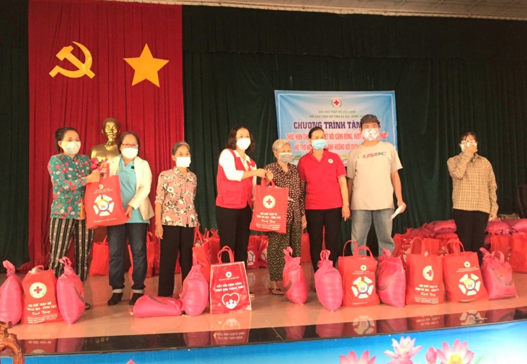 Những phần của Hội Chữ thập đỏ Việt Nam đến với người dân có hoàn cảnh khó khăn Mỗi hộ gia đình được tặng 01 phần quà trị giá 500.000 đồng gồm thực phẩm, nhu yếu phẩm và vật dụng phòng, chống dịch bệnh COVID-19 như: Gạo, đường, bột ngọt, dầu ăn, nước tương,…
