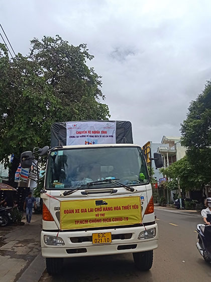 Theo đó, “Chuyến xe nghĩa tình” chở tới Hội Bảo trợ bệnh nhân nghèo TP. Hồ Chí Minh (đường số 5, phường Hiệp Bình Phước, thành phố Thủ Đức) 3,8 tấn gạo, 768 thùng mỳ tôm, 700 quả trứng, 13 tấn rau củ quả và các nhu yếu phẩm phục vụ đời sống hàng ngày,…